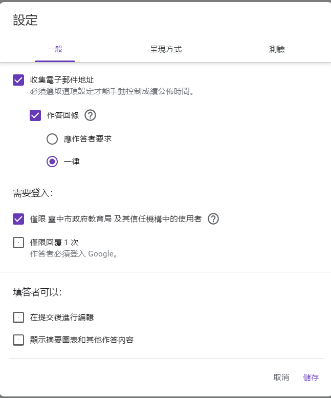 谷歌表單設定:一般部分,